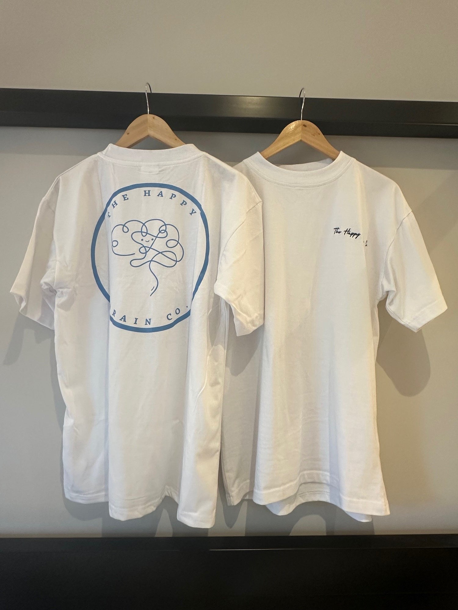 Our flagship tee, an oversized fit with high quality print and embroidery. Available in white with either a black or a blue print.